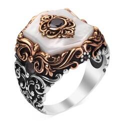 Karo Model Beyaz Sedef Taşlı Gümüş Erkek Yüzük