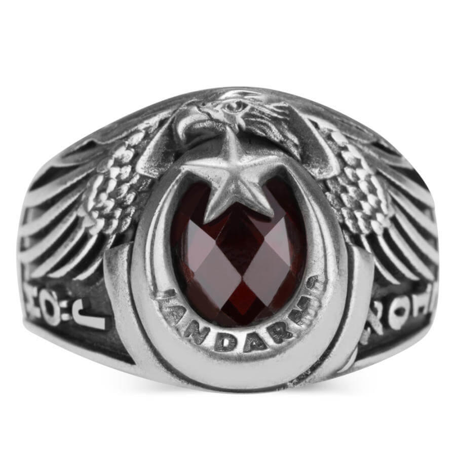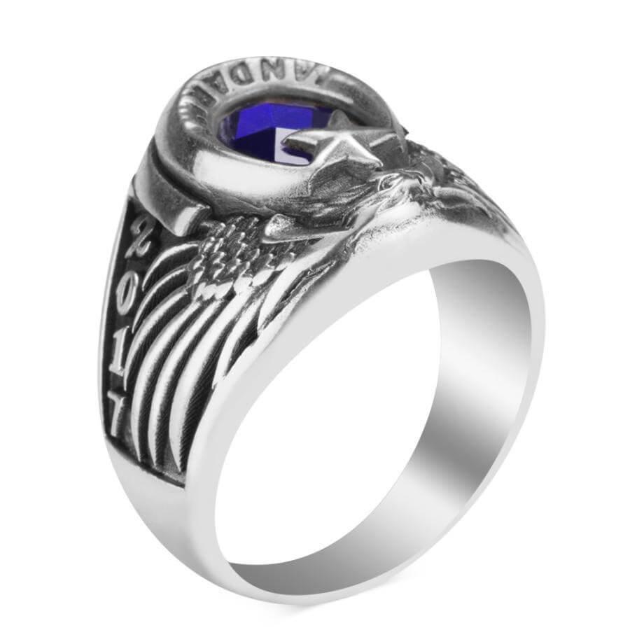 Mesleğinizin gururunu parmağınızda taşıyın! Jandarma Özel Harekat mesleği mensuplarına özel hazırlanan bu Anı yüzüğü ile siz de gücü parmağınızda hissedeceksiniz! 925 ayar gümüş üretimli bu aksesuarda şanlı bayrağımızın sembolü olan ay yıldız figürüne ve hakimiyet sembolü olan kartal baş tasarımı kullanılmıştır. Yüzük yanlarında "JÖH" kısaltması diğer yanında ise "2017" yazısına yer verilmiştir. Siz de hemen Anı Yüzük'e gelerek sipariş verin, mesleğinize özel olarak tasarlanan şık bir aksesuarın sahibi olun.