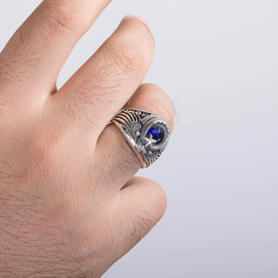 Yüzük üzerindeki kırmızı zirkon taşa ay ve yıldız motifleri işlenerek Türk Bayrağı motifi yapılmıştır, bu motif ay yıldız ve kartal başı ile birleştirilmiştir.