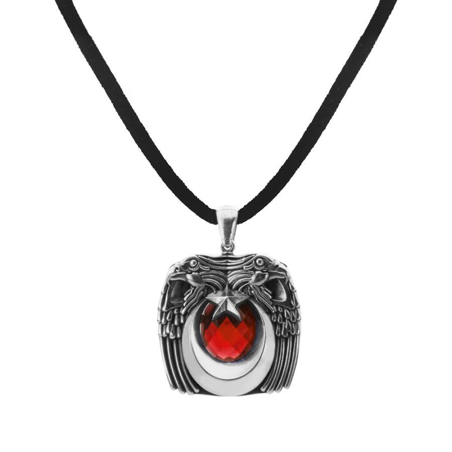 Kırmızı Taşlı Kartal Başlı Gümüş Erkek Kolyesi Özellikleri
