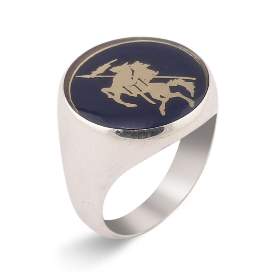 - Mavi yüzük minesi üzerine Kayı Boyu Sancağı motifi işlenmiştir.