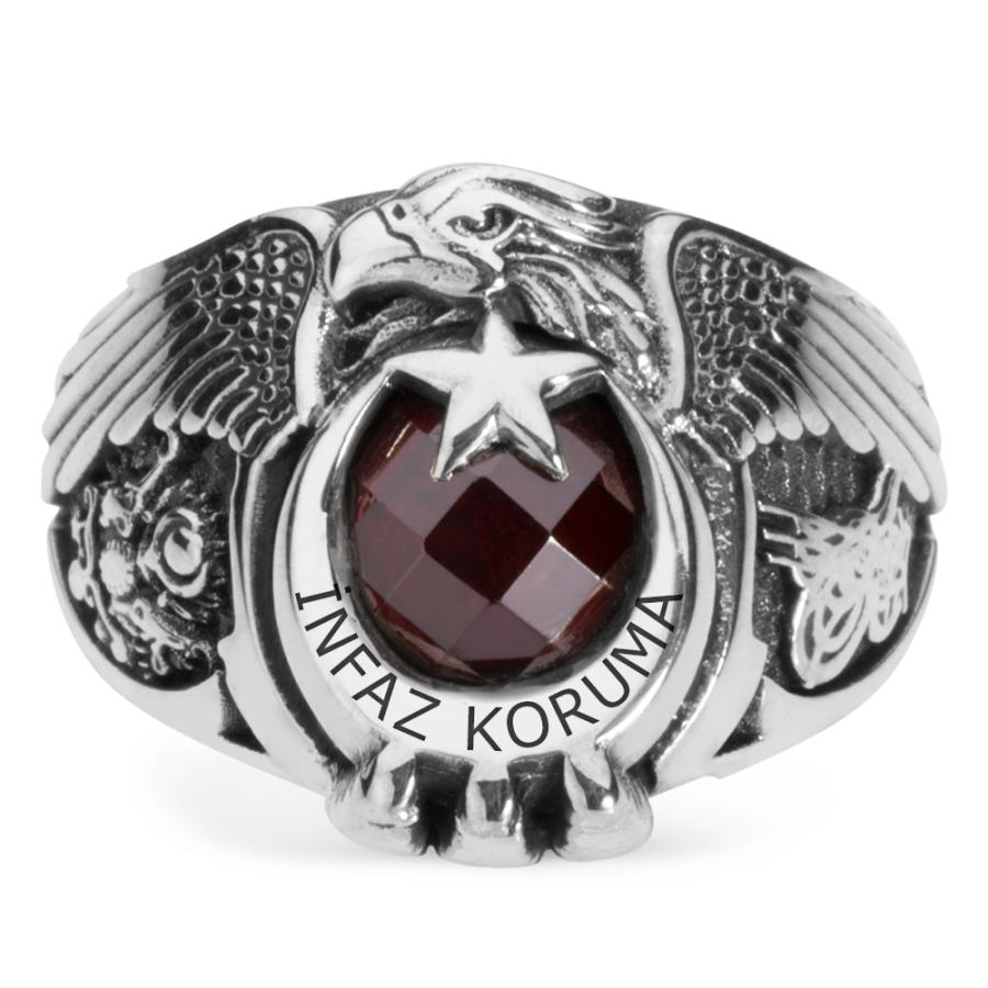 Üzerinde İnfaz koruma ve İsminiz ile Soyisminizin yazılı olduğu, Kartal Başı ve Kartal Pençesi motifleri bulunan, bir yanında Osmanlı Devlet arması, diğer yanında Osmanlı Tuğrası işlenmiş ömür boyu garantili 925 ayar gümüştenyüzük.