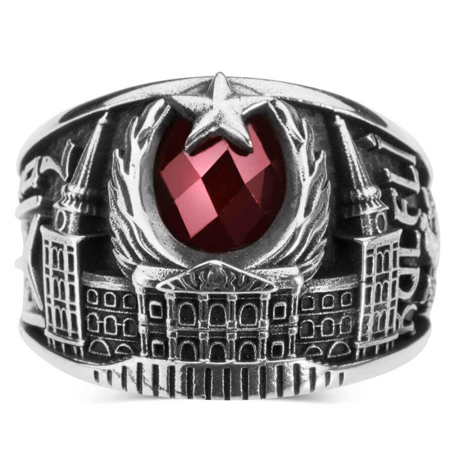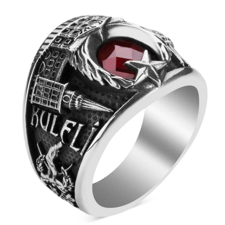 Kuleli Askeri Lisesi 7000 360. Dönem için hazırlanmış 925 ayar gümüş kırmızı zirkon taşlı "Kuleli Askeri Lisesi 7000 Dönem" yüzüğü.