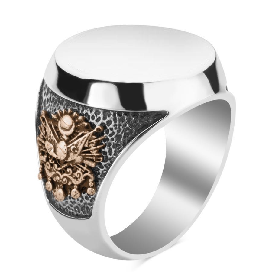 Millet koleksiyonun en özel parçalarından birini oluşturan Osmanlı arması ve ay yıldız temalı 925 ayar gümüş yüzüğe daha yakından bakın!