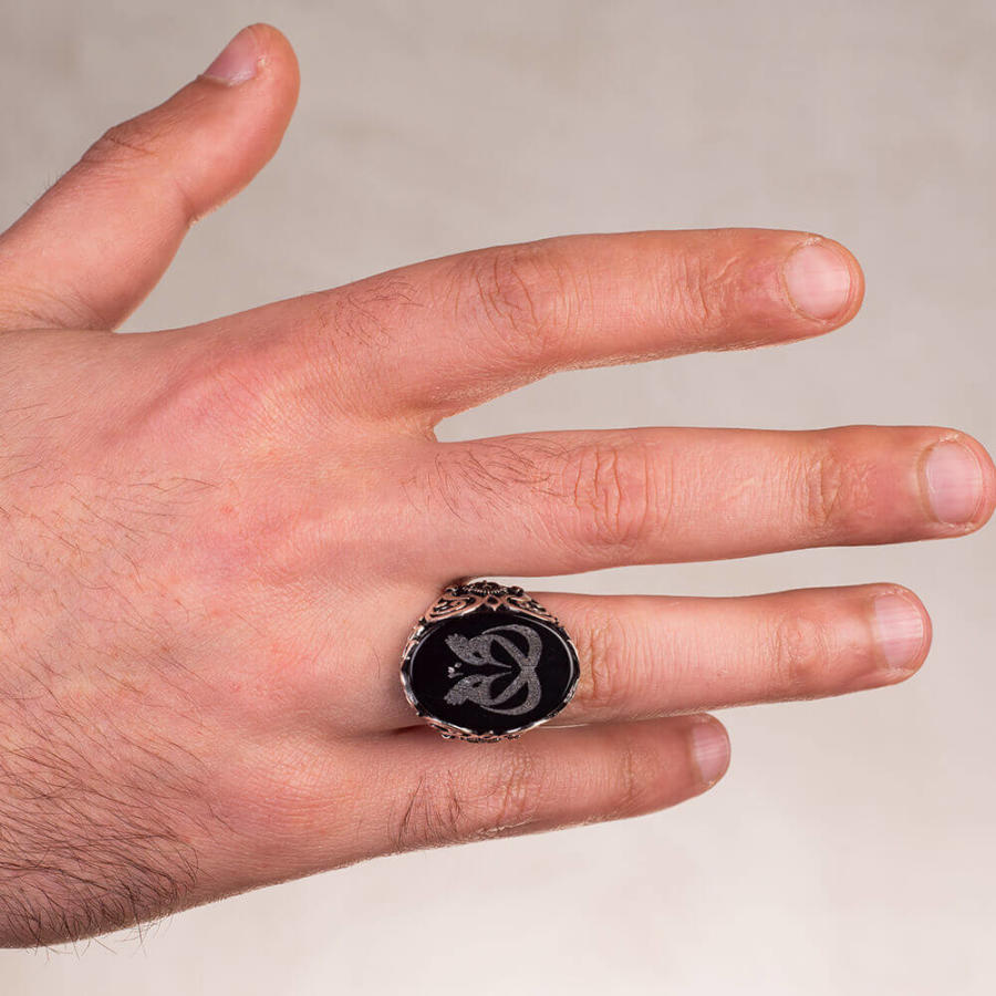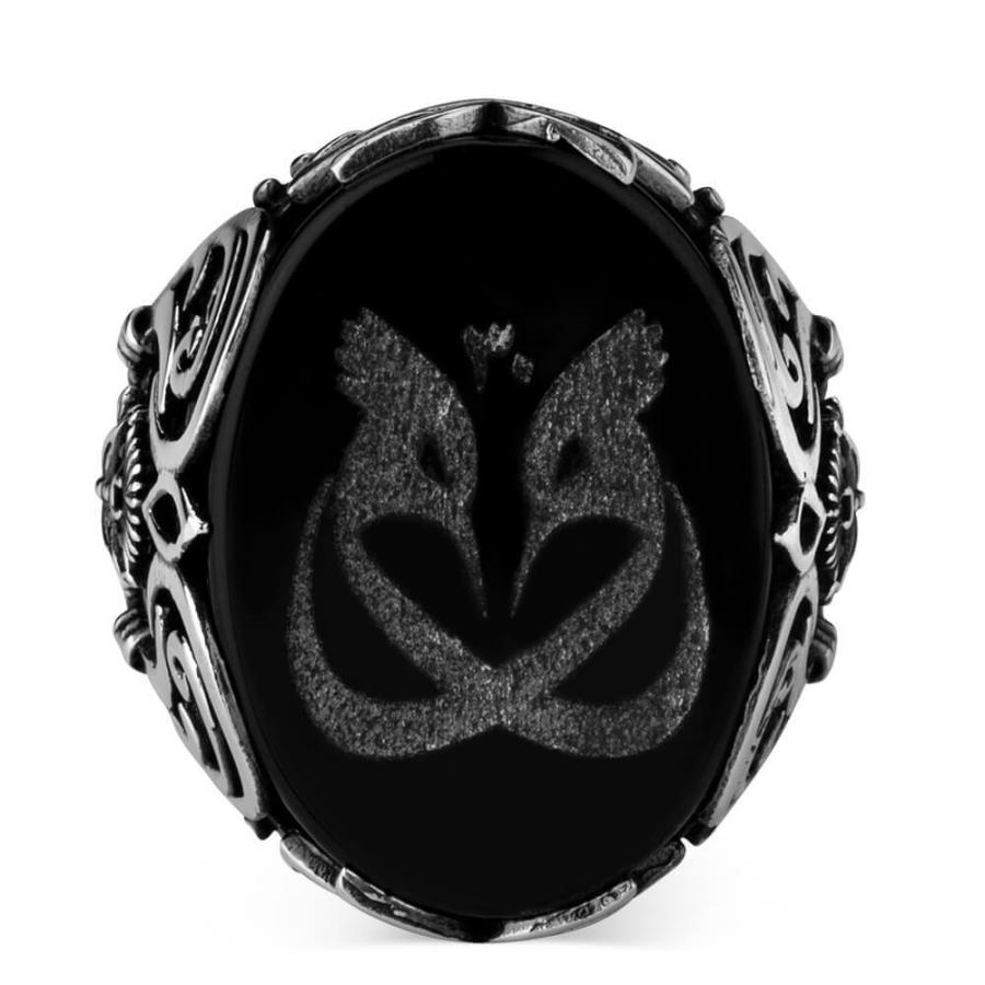 Osmanlı Arma Motifli Oniks Taş Erkek Yüzük
