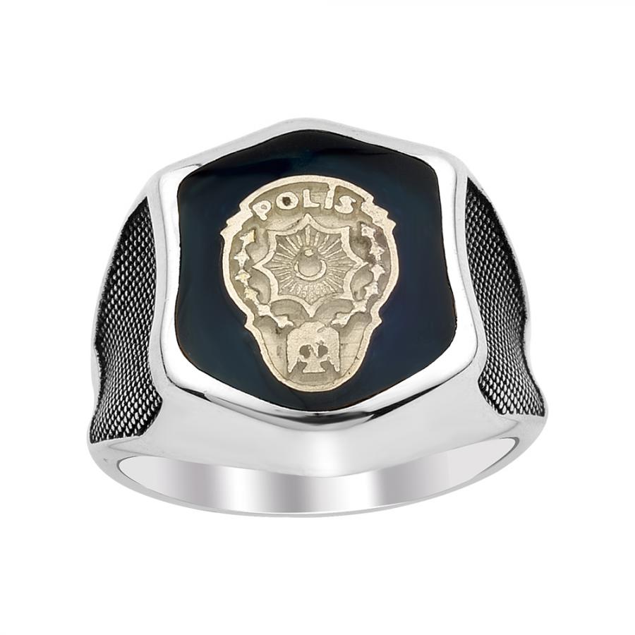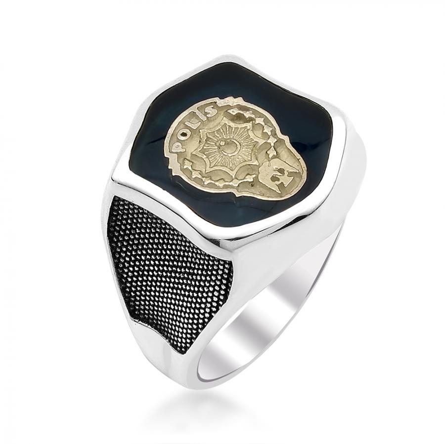 Siyah Mine Üzerine Polis Amblemli Yüzük