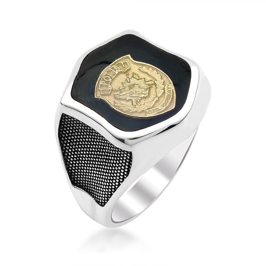 Tek Kartal Başlı Göktürkçe Türk Polis Armalı Yüzük