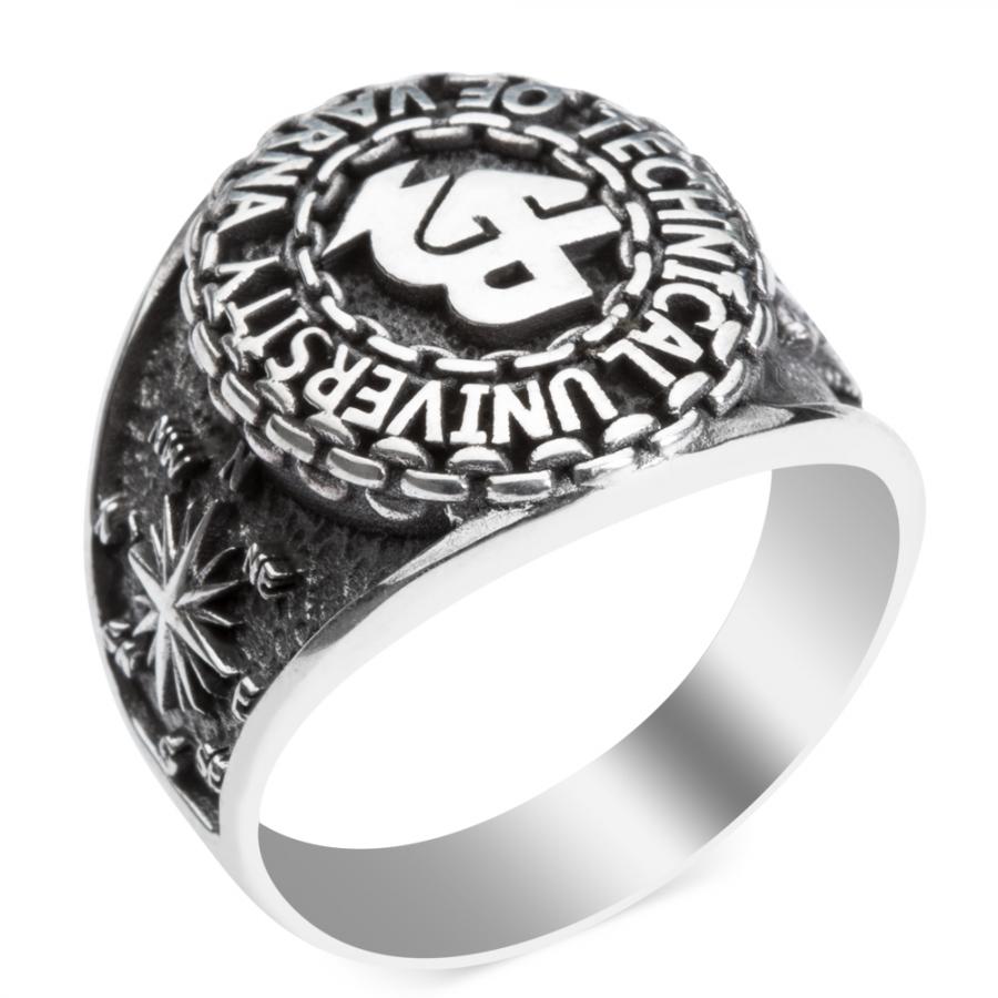 Bulgaristan'ın Varna şehrinde kurulan ve ülkenin en büyük ikinci üniversitesi olma ünvanını taşıyan "Varna Teknik Üniversitesi" denizcilik fakültesi öğrencileri ve mezunlarına özel olarak tasarlanan bu Anı yüzüğüne daha yakından bakın! 925 ayar gümüş kullanılarak üretilen bu aksesuarda yüzük üzerine ingilizce olarak "Technical University Of Varna " yazısı işlenmiş yüzük yanlarında ise gemi çapası ve pusula figürüne yer verilmiştir. Siz de hemen sipariş verin. Okulunuza özel şık bir aksesuara Anı Yüzük'ün verdiği ömür boyu garanti imkanıyla sahip olun.