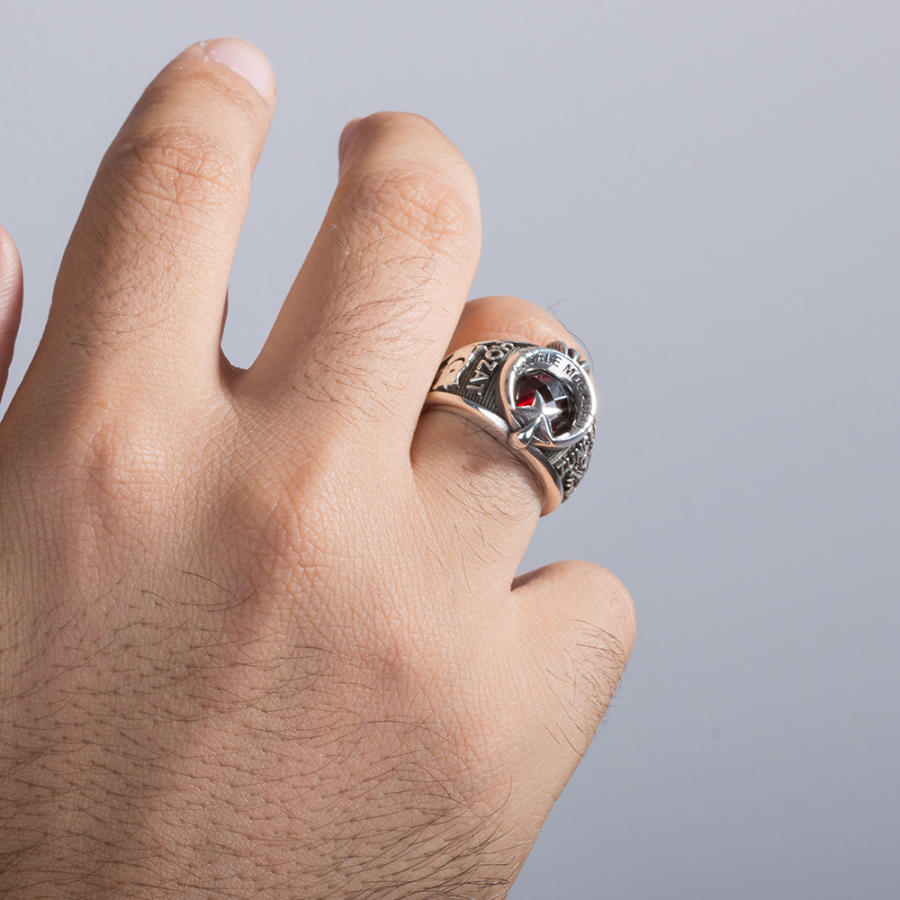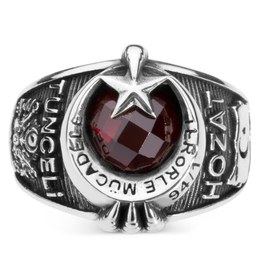 Tunceli Hozat Terörle Mücadele ekipleri için tasarlanan 925 ayar gümüş kırmızı zirkon taşlı pençeli Terörle Mücadele yüzüğüne daha yakından bakın. Mesleğinize özel şık bir nişanenin sahibi olmak istiyorsanız doğru adrestesiniz. Çalışma hayatınız olan askerlik yıllarınızda en özel anıları üzerinden yıllar geçse de bu aksesuar ile ölümsüzleştireceksiniz. Siz de hemen sipariş verererek, kendi devrenize özel şık bir yüzük tasarlatabilir, sahibi olabilirsiniz.