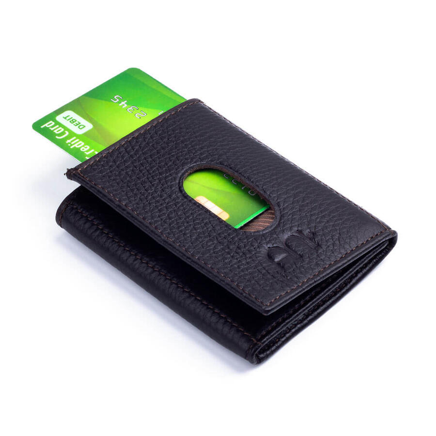Twelve Hakiki Deri Patlı Kartlık Cüzdan Siyah-Taba