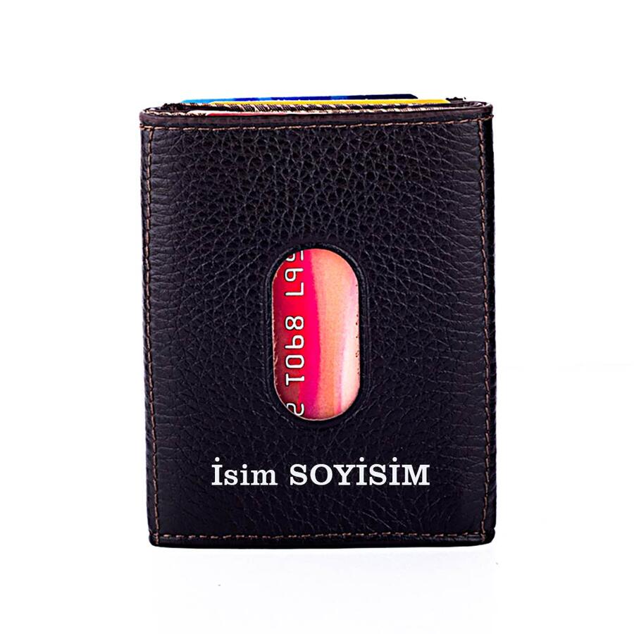 Twelve Hakiki Deri Patlı Kartlık Cüzdan Kahverengi