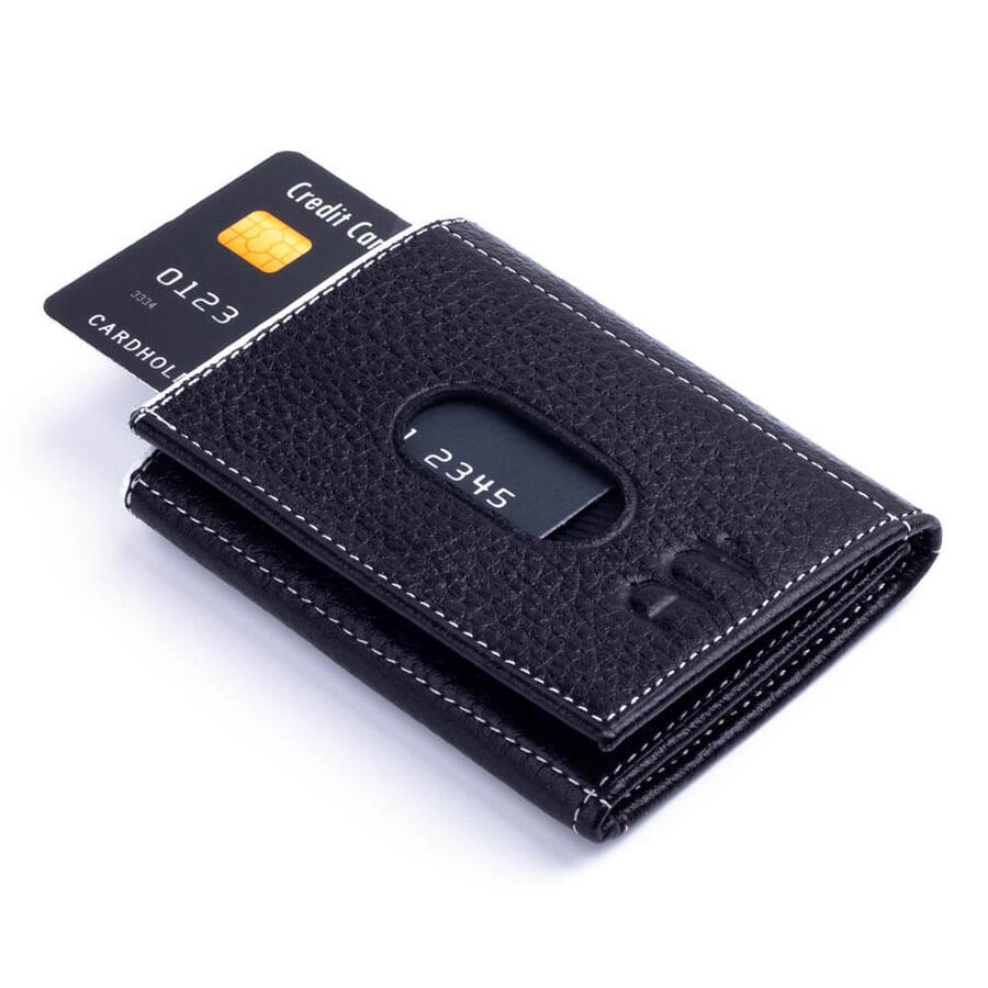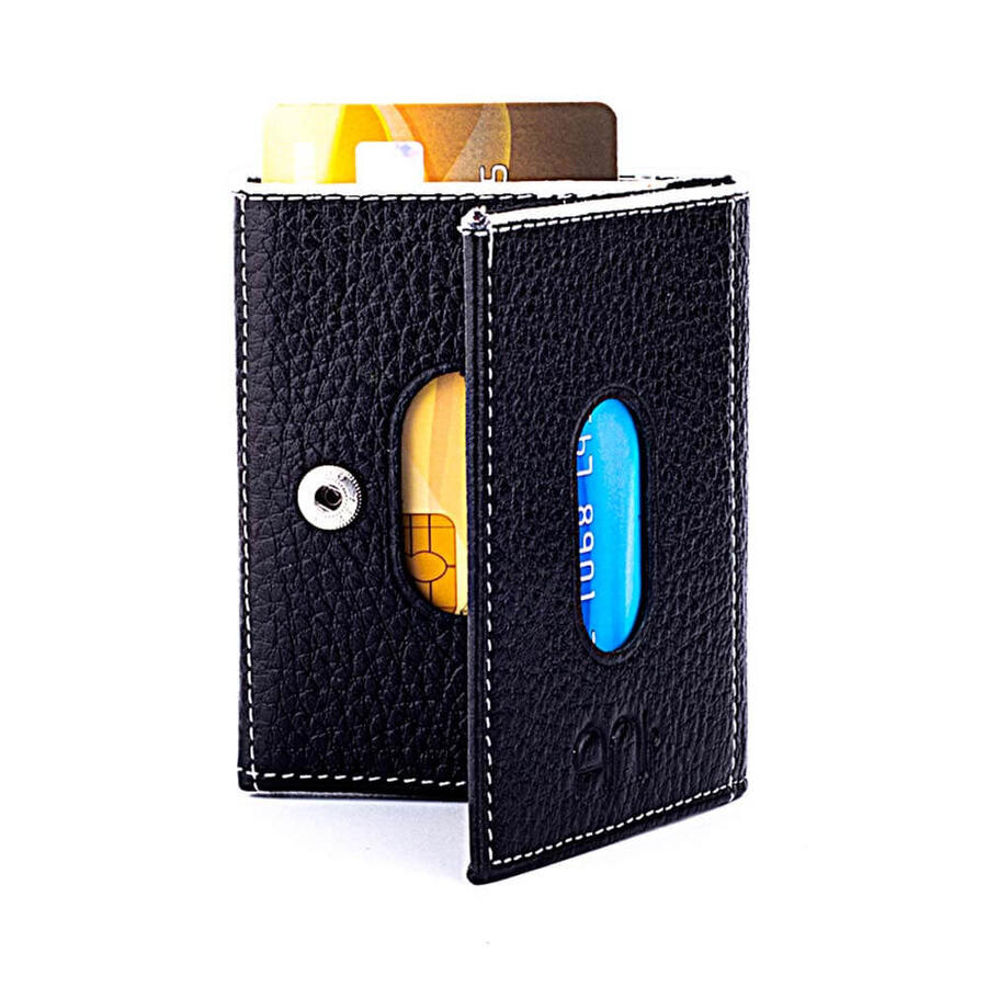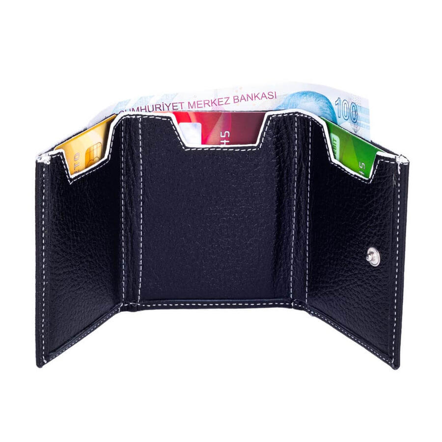 Otomatik Mekanizmalı Ekstra Akordiyon Kartlıklı Hakiki Deri Cüzdan Siyah