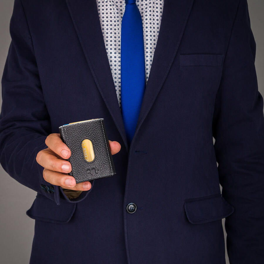 Kişiselleştirilebilir Otomatik Mekanizmalı Deri Kartlık Siyah