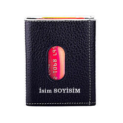 İsme Özel Çift Taraflı Deri Erkek Kartlık Cüzdan Siyah Renk